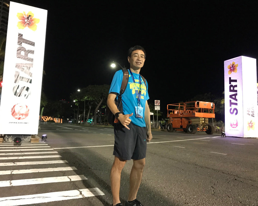 In December 1979, he ran his first marathon at the Honolulu Marathon in 3:23. The following year in 1980, he ran his first sub 3 hour marathon (2:57). He has run a sub 3 hour marathon in 5 decades of his life (teens, 20’s, 30’s, 40’s, 50’s) and in 4 different actual decade years (1980’s, 90’s, 00’s, 10’s) and plans to attempt one more sub 3 hour in the 2020’s decade. All of these have been done at the Honolulu Marathon.
